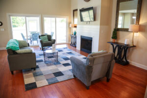 • Spacious living room with indoor gas fireplace